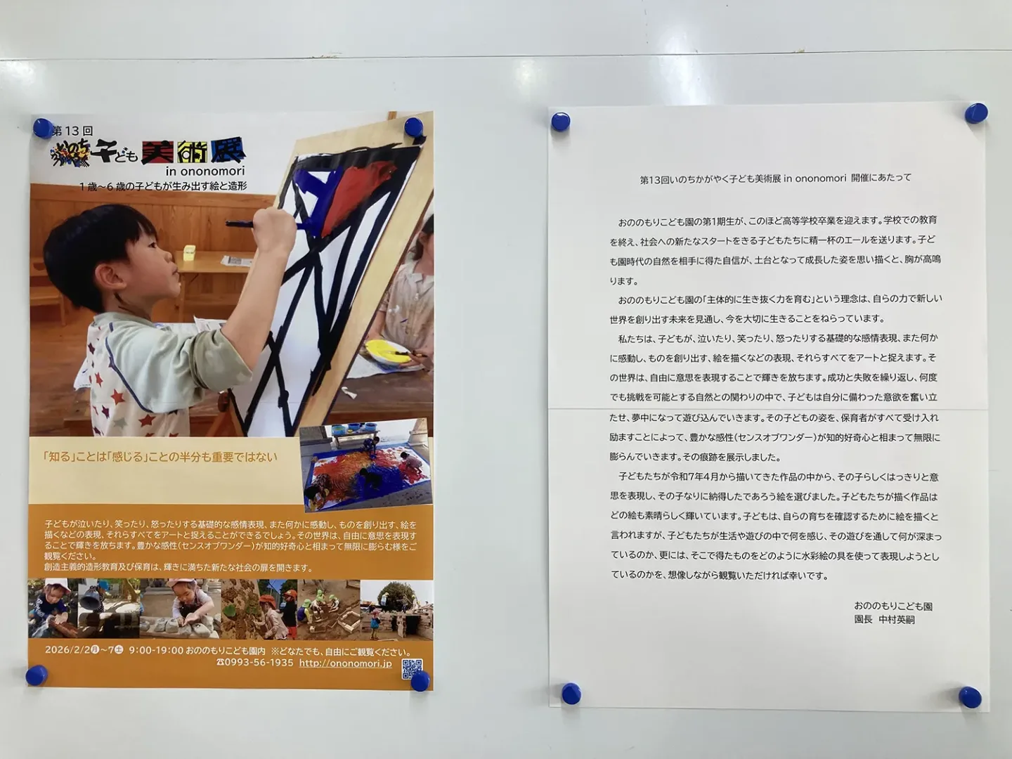 いつもお世話になっております。 第13回いのちかがやく子ども美術展 in ononomori を開催します。(2/2~2/7 9:00~19:00)